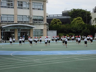 カラフルな手袋をつけて、みんなが一緒に楽しく踊っています。笑顔もとてもよいです。