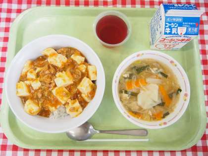 週始まりの今日は、子供たちに人気の「マーボー豆腐丼」です。