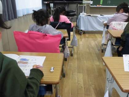 教科書の挿絵を見ながら、同じ数の生き物や物を見付けました。そして、同じ数だけ○を塗ったり、数を書いたりしました。