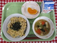 「ビスキュイパン」は、パンにビスケットの生地を塗って焼いたものです。表面の生地はサクサクで、中はふわっとしています。メロンパンにも似ていますね。給食の時間に6年生の教室へ行くと、「このパン食べたかったんだ!」と嬉しそうに教えてくれました。6年生にとって、残り3回となった給食。明日も楽しみにしていて下さいね。