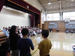 1年生をむかえる会を体育館でしました。