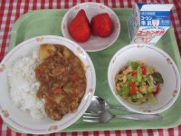 「お好みポテト」は、新しいメニューです。揚げたじゃがいもにソースとケチャップをまぶし、青のりとかつお節をのせてお好み焼き風に仕上げました。子供たちに好評でした。