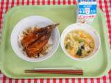 ≪本日の献立≫ ・めかぶ入りかき揚げ丼 ・芋の子汁 ・牛乳 全国学校給食週間...