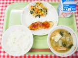 ≪本日の献立≫ ・カツカレー ・コールスローサラダ ・紅白ゼリー ・牛乳 と...