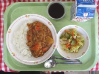 【今日の献立】・カレーライス・キャロットサラダ・ぶどうゼリー・牛乳 今日の給食は...