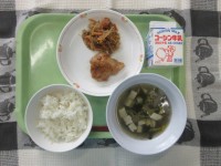 ご飯むらくも汁さばの竜田揚げ五目からし和え牛乳