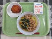 中華つけ麺かぼちゃドーナツ牛乳今日はドーナツをざくざくと揚げました。美味しく食べ...