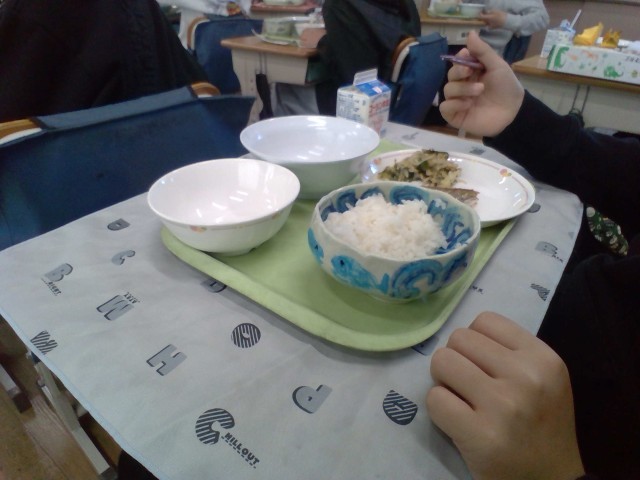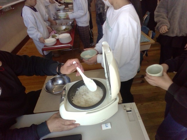 精米が終わったお米を炊いて、給食のご飯と食べ比べをしました。