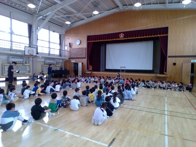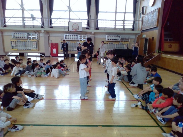 4月20日(月)に、一年生を迎える会を行いました。新しく入学した一年生を、全校で温かく迎えることができました。2年生からはアサガオの種を受け取り、上級生に見守られながら校内を一周し、全校児童の拍手に包まれて入場しました。会の中でも、上級生が優しく声をかけたり手を引いたりする姿が見られ、心温まるひとときとなりました。これからの学校生活が楽しみです。