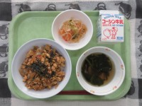 四川豆腐丼 海藻サラダ 美生柑 牛乳