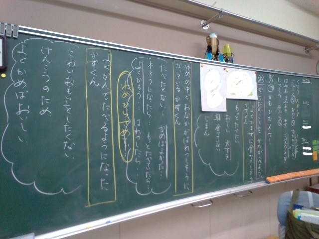 今日は「健康について考える」ことがテーマでした。給食の食べ方をはじめとして、健康に気をつけて生活しようという意識が高まりました。