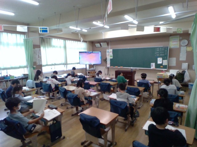 担任が話を読み聞かせ、その感想を書きました。みんなスラスラと書いていました。