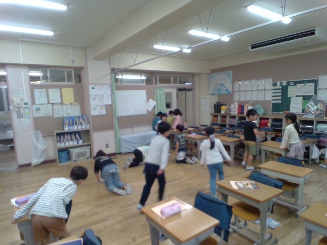 週に2回の掃除の時間です。やり方もすっかり覚え、とても素早く丁寧にできるようになりました。
