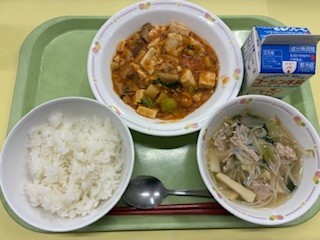 給食では、辛いのが苦手な人でも食べやすいよう、豆板醤の量で辛さを調整しました。