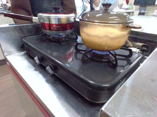 家庭科の学習で調理実習を行いました。春から育て、収穫したお米も使用したご飯作り。普段は、スイッチ一つ押すだけで、手軽に食べることのできるご飯ですが、火加減を見ながらストップウォッチを握りしめて炊きました。