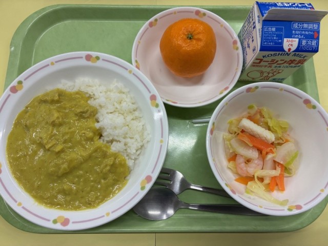 給食では、カレー粉や一味唐辛子で代用しました。