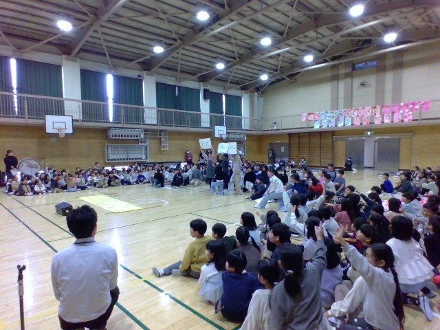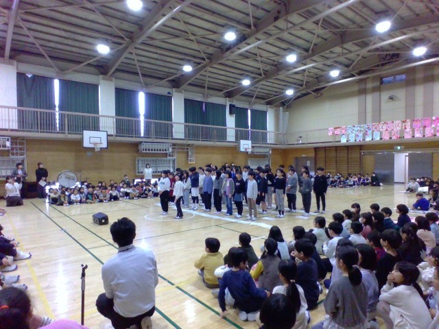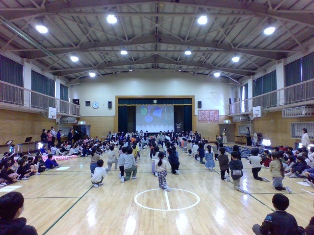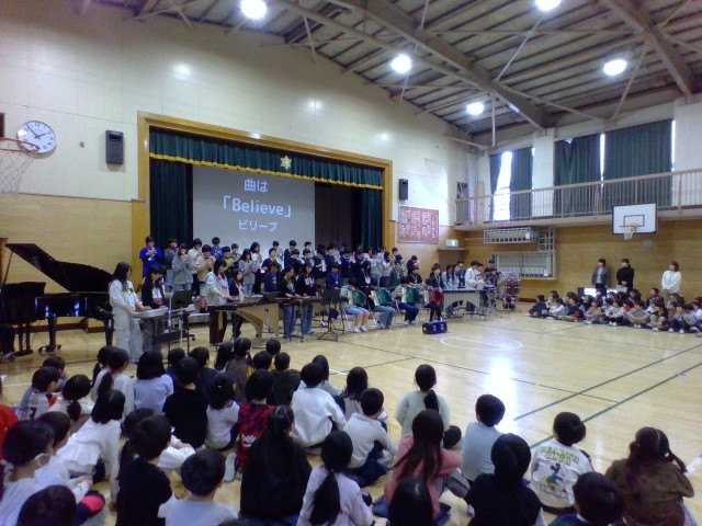 6年生がお礼の気持ちを込めて披露した合奏に、どの学年の児童も聞き入っていました。とても感動的な会になりました。