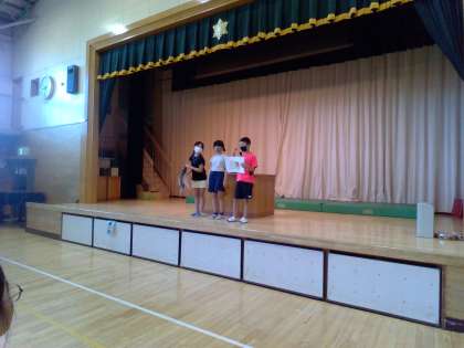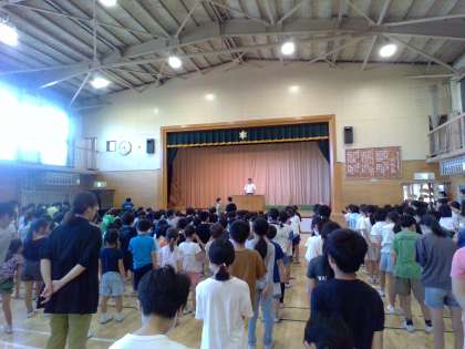 7月10日は710(なっとう)の日というお話が校長先生からありました。暑いときにはネバネバとしたものを食べるといいそうです。また、今週は全学年が着衣泳を行います。しっかりと話を聞いて学習に取り組んでほしいというお話もありました。
