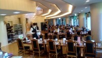 9月26日朝食です。最初に食事係がお水を運びました。朝ご飯を食べる前から、ほうと...