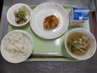 10日6日(火)の献立麦ごはん 四川豆腐 わかめスープ 果物 牛乳今日のデザート...