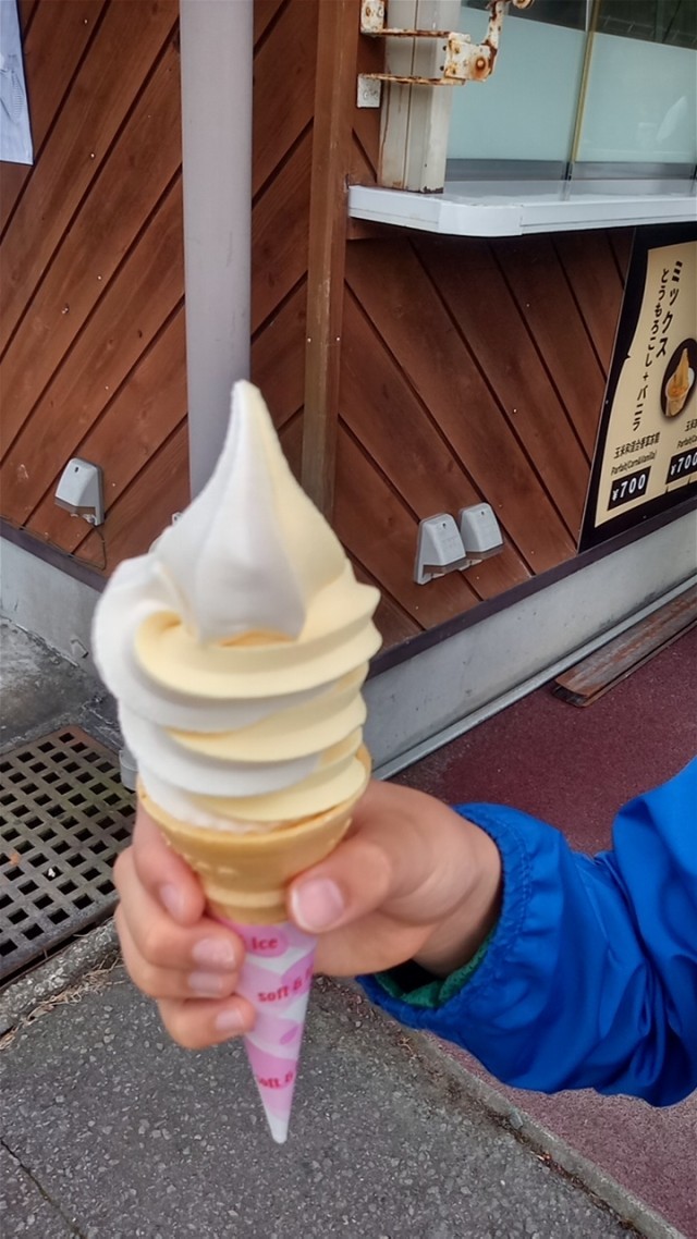 富岳風穴の見学のあと、楽しみにしていたソフトクリームの時間です。