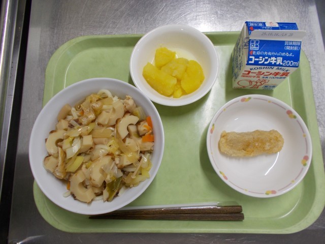 今日のお魚は「たら」を使っています。白身魚でくせもなく、あっさりした味で食べやすい魚です。これから寒い季節には、「たら」という言葉を聞くと、鍋料理をおもいうかべますが、給食では揚げ物にしてコクを足してみました。うどんに入れてもよし、そのまま食べてもよし、どんな食べ方をしているかこれから教室に行ってきます。