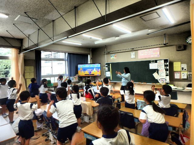 英語の歌「Head, Shoulders, Knees and Toes」を歌いながら、体の部分の言い方を楽しく覚えました。さらに、「run」「dance」などの動きを表す言葉も学び、ジェスチャーゲームを通して英語の表現に親しみました。子供たちは笑顔で体を動かしながら、英語でのやりとりを楽しんでいました。