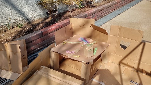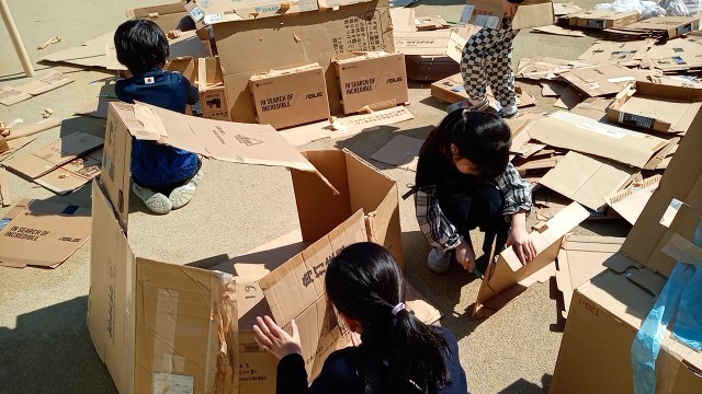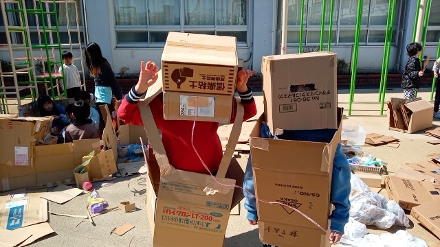 段ボールを使って、部屋をつくったり、テレビをつくったり、ロボットもつくっていました。