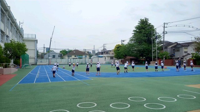 これは、5月から始まる体力テストのソフトボール投げの練習です。