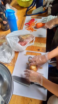 9月25日カレーづくりです。火おこしからはじめ、飯盒でご飯をたき、野菜も切りまし...