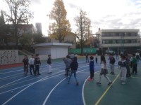 体育朝会で、縄跳び記録会を行いました。長縄の8の字跳びを3分間でどれだけ跳べるか...