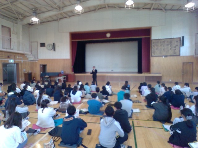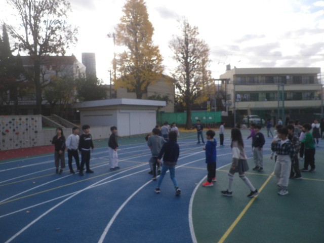 今日は秋晴れの空の下、校庭で全校朝会を行いました。初めにバドミントンとソフトボー...