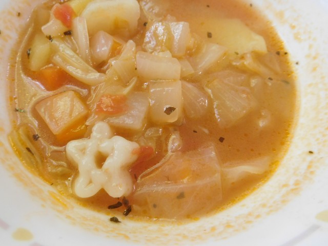 「ミネストローネ」には星の米粉マカロニを入れました。