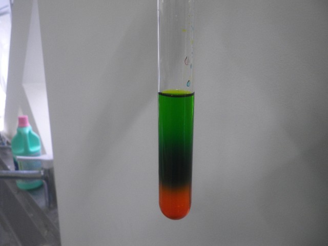 100mlの水に5gの食塩を溶かすと、溶かす前と比べても質量が変わらないことを確認しました。このことから、溶けたものは、目には見えないけれども、水の中に存在することが分かりました。そして、食塩濃度の違いから、虹色の水溶液を作りました。