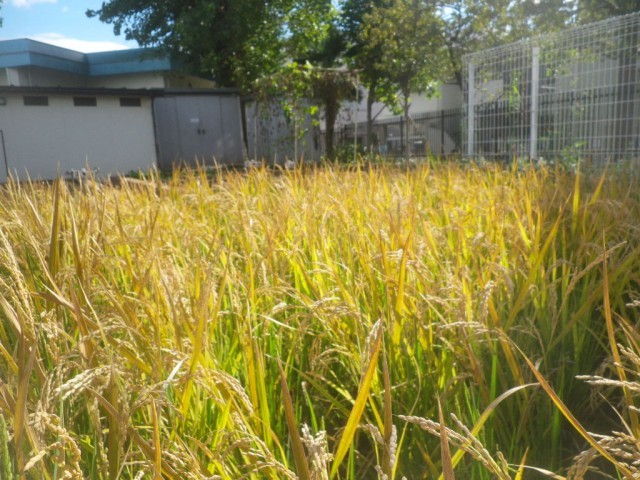 5年生が1学期に植えた田んぼの苗が、たくさん穂をつけました。もうそろそろ収穫する予定です。稲作を体験することで、農家の方々の工夫や苦労を知ってほしいと思います。