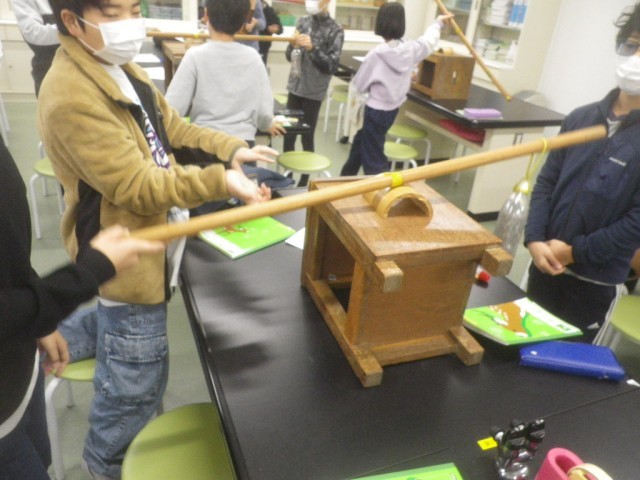 6年「てこのはたらき」という単元で、重いものを持ちあげるてこの原理について学習しました。