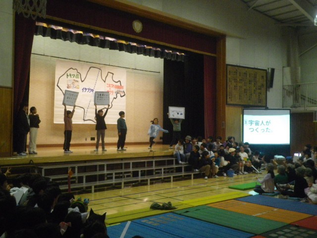 前半は、1年「高松にんじゃ学校」、3年生「ふるさと豊島区にズームイン!」、5年生「地域の果てまでイッテQ!」を発表しました。