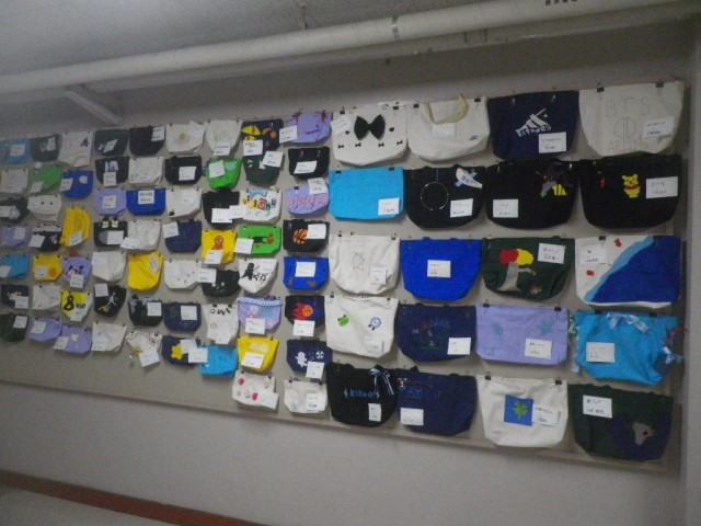 6年生が家庭科の時間にオリジナルのバックを作りました。学校1階にて掲示してありますので、ご来校の際はぜひご覧ください。