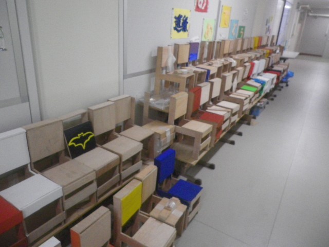 6年生が図工の時間に木を切り出して組み立て、イスを作りました。