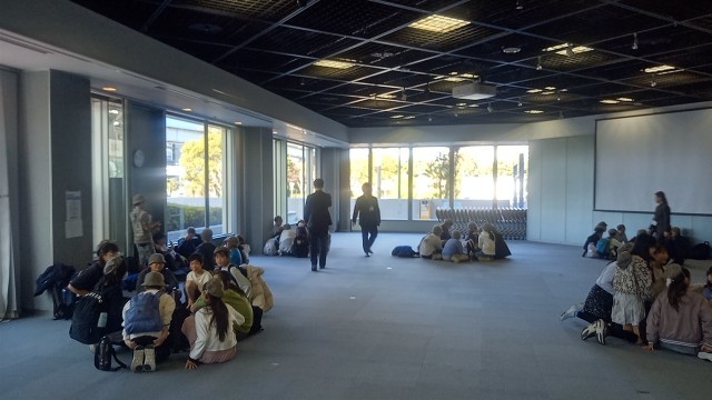 5年生は、有楽町線とゆりかもめを乗り継ぎ、東京グローバルゲートウェイに来ています。通勤時間の混雑している車内では静かに過ごし、駅員さんへのあいさつもしっかりできています。