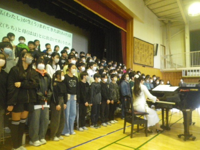 2時間目には全クラスで道徳の授業をし、3時間目には体育館で全校児童が集まって講師の緑川るみ先生のお話「いのちのコンサート」を聞きました。