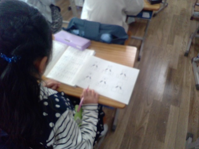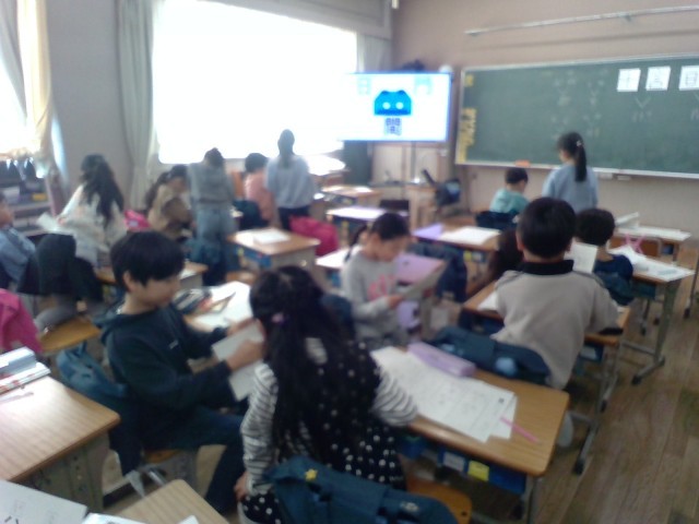 口と口で「回」、口と鳥で「鳴」など、自分で見付けた漢字を友達と発表し合いました。