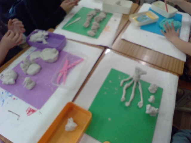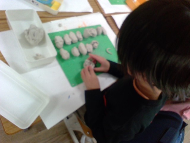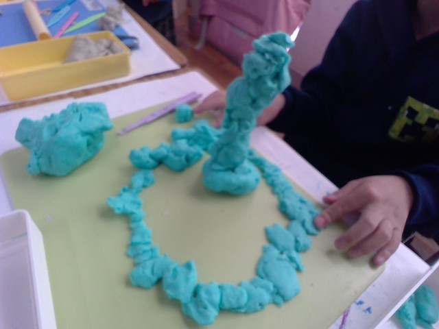 1年生は、粘土を使って自分の「夢の国」を作っています。