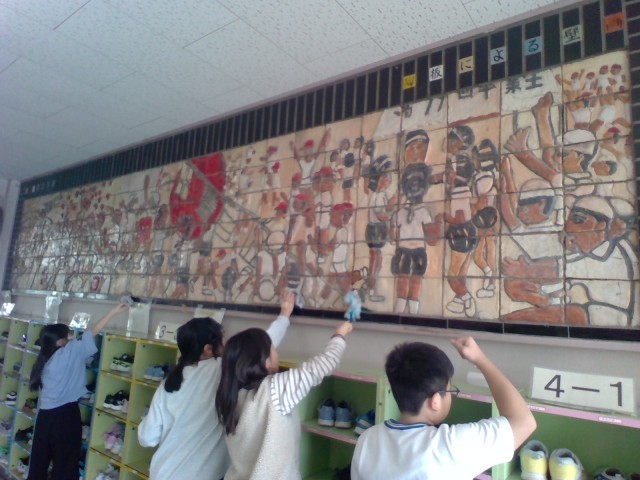 5年生は、家庭科の学習で、校内のいろいろな場所を掃除しています。