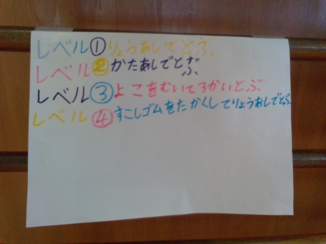 難しいレベルから簡単なレベルを用意して、園児が選べるようにしています。