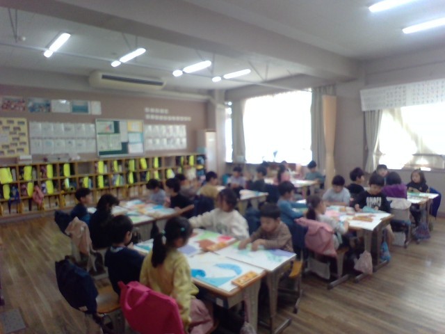 図工「いろいろな かたちのかみに」(1年生)