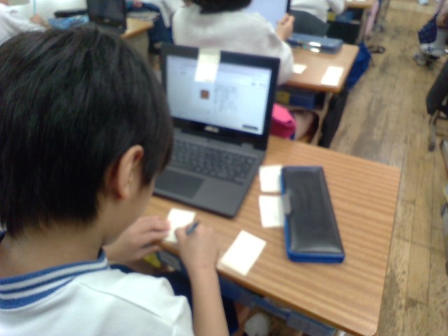 友達からもらった付箋は、まとめのワークシートに貼っておきます。