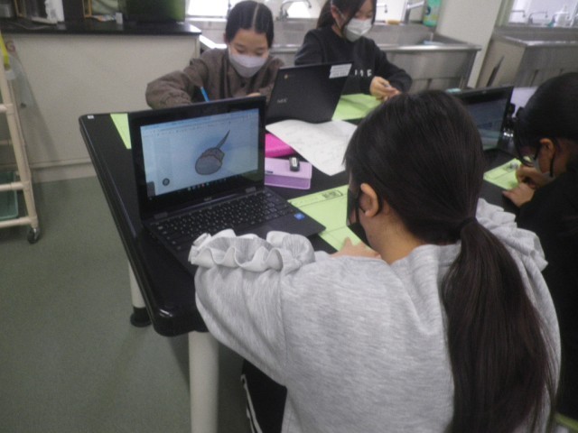 図書室で借りた本やインターネットを使って、森林破壊や生物多様性の減少、温暖化などについて理解を深めていました。