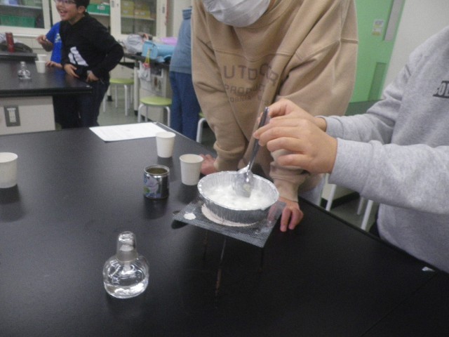 科学クラブでは、でんぷんと牛乳を使って「牛乳わらび餅」を作りました。自分たちで作ったお餅は、出来立てで温かく、きなこをかけて食べました。とても楽しい1年間を過ごすことができました。