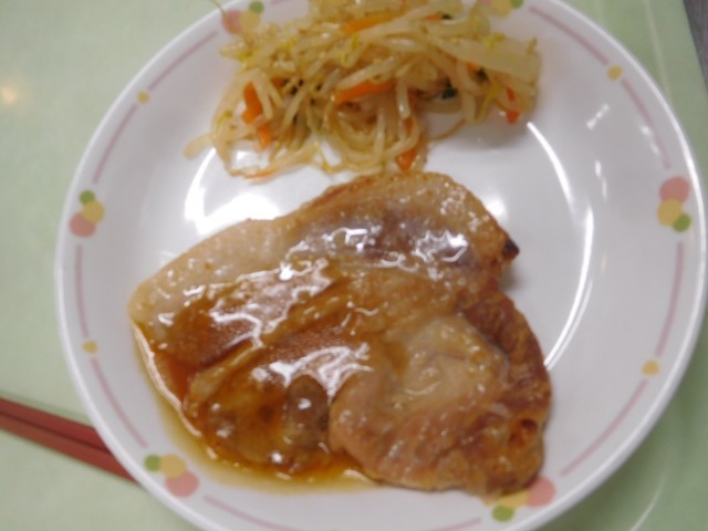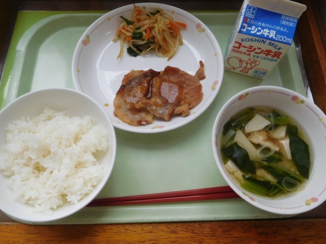 ごはん・豚肉のしょうが焼き・にらともやしのあえもの・豆腐汁・牛乳